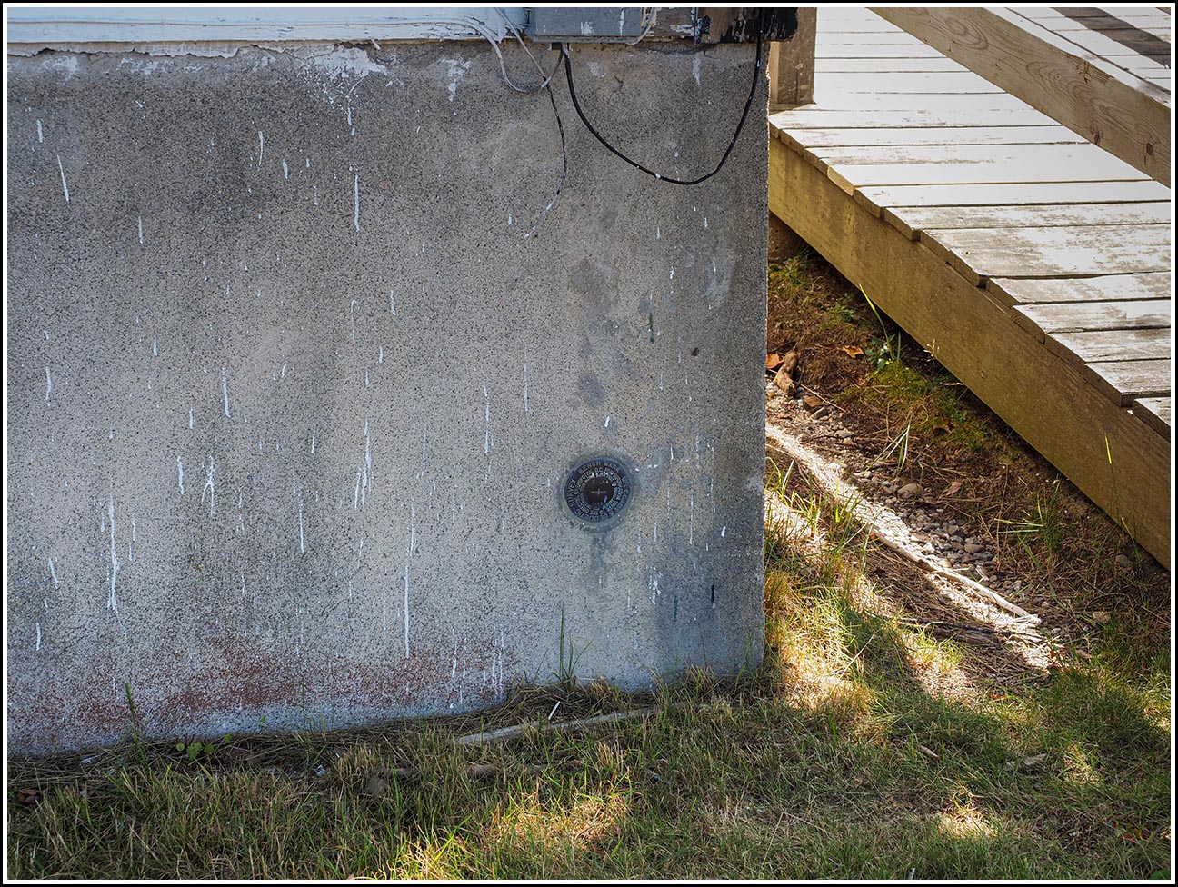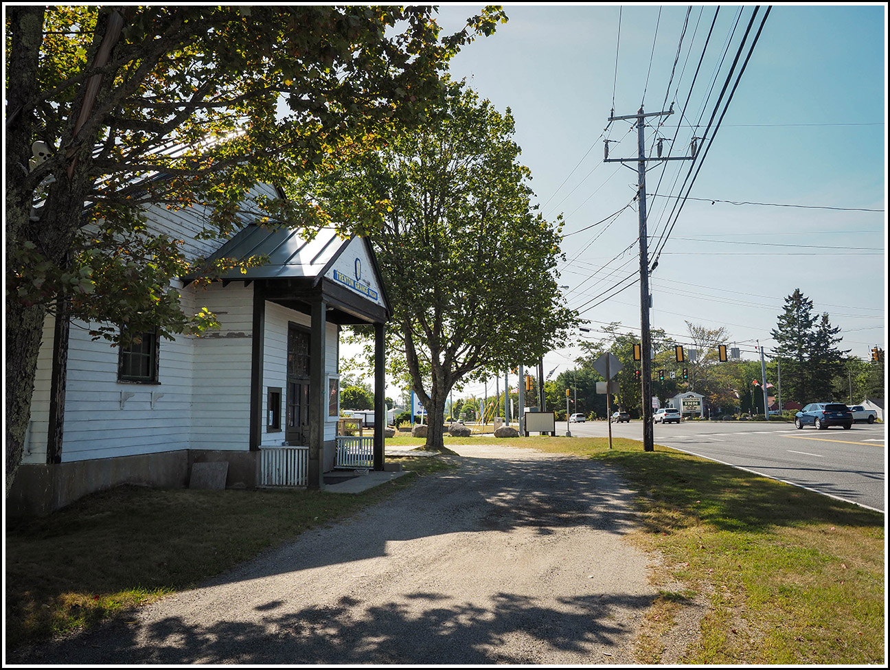 We found easy parking in the empty lot of the grange hall and walked right up to the mark. As expected, it was in excellent condition, although there are some paint drips across its surface from a sloppy paint job done on the siding above the mark. Still, the stamping is clearly legible. The smell of wood smoke (for steaming the lobsters?) coming from Lunt’s Gateway Lobster Pound directly across the highway was intoxicating. It smelled like summer and fall at once.